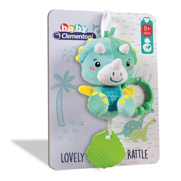Un hochet en peluche en forme de dinosaure pour divertir bébé au cours de ses premiers mois.