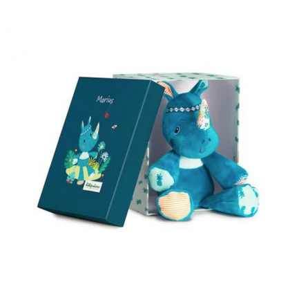 Marius le rhinocéros est une peluche très douce fabriquée avec différents matériaux. Il propose plusieurs textures et couleurs parfaites pour émerveiller les plus petits et leur offrir un compagnon rassurant.