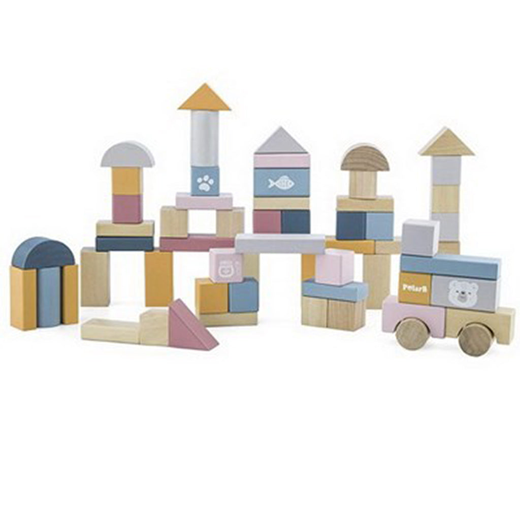 Kit de construction de 60 blocs, de différentes formes géométriques et une grande variété de couleurs, ce qui permettra à l’enfant de développer sa créativité en créant des bâtiments très originaux. En outre, les figurines sont fabriquées à partir de matériaux naturels obtenus pendant des processus de production écologiques et peintes avec des peintures non toxiques qui privilégient la sécurité des enfants.