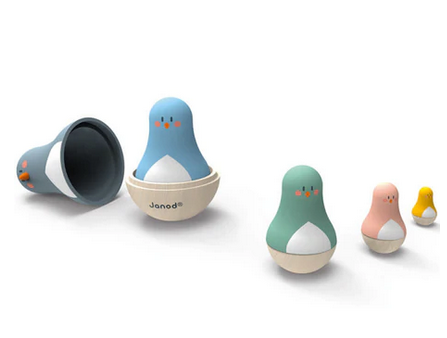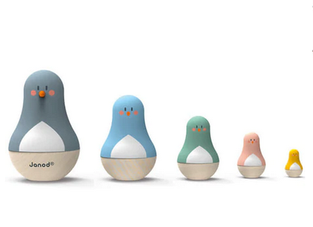 Ce jeu de construction en bois est composé de 5 jolies poupées en forme d'oiseaux qui s'emboitent les unes dans les autres, comme des poupées russes. L'oiseau le plus grand a un joli bec coloré en volume. Ce jeu sera également un bel objet de décoration pour une chambre d'enfant.