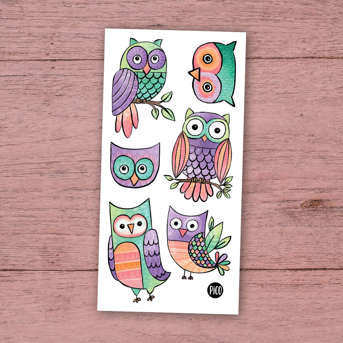 Tatouage temporaire Les chouettes hiboux / pico-258